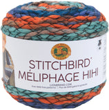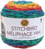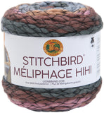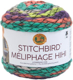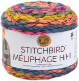 LION BRAND YARN-Spinella. Color, texture and softness. This bulky novelty yarn has a unique construction; this self-striping acrylic roving is caged in a black netting, making the exquisite color ways pop. Two easy-to-use cake put ups make a generous scarf or cowl. Weight category 5. Content: 83% acrylic, 17% wool. Putup: 3.5oz/100g, 131yd/120m. Gauge: 12s x 16r = 4in/10cm on size US11/8mm knitting needles. Crochet gauge: 11sc x 14r = 4in/10cm on K10/6.5mm crochet hook. Care: machine wash, lay flat to dry. Comes in a variety of colors. Each sold separately. Imported.