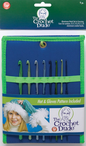 BOYE-Crochet Dude Aluminum Hook Set. This set of hooks will come in handy for any project! This package contains eight aluminum crochet hooks, and one case with pockets for small notions (hooks sizes include: D3, ER, F5, G6, H8, I9, J10 and K10). Imported.