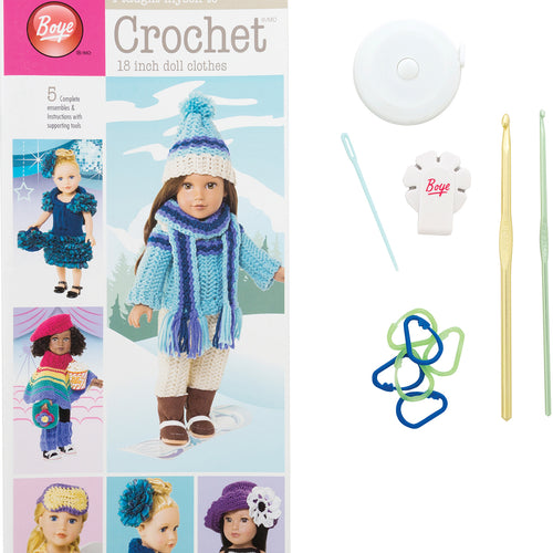 Boye-I Taught Myself To Crochet 18 Inch Doll Clothes. If you are familiar with the basics, crocheting doll clothes is a fun way to improve your skills and experiment with new techniques. This package contains one book with instructions for five complete ensembles, two aluminum crochet hooks in sizes D/3 (3.25mm) and H/8 (5mm), one yarn cutter, one tape measure, one 2-3/4 inch long plastic needle and six carabiner stitch markers. Imported.