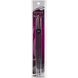 Knitter's Pride-Cubics Platina Double Pointed Needles. Engineered from hollow brass pipes and plated with chrome making the shiny smooth surface a delight. The cuboid shape in cross section eventually gives way to perfectly tapered brass tips. The unique ergonomic shape provides excellent grip and uniform stitch definition. The package contains five 8 inch long double pointed needles in size 0/2mm. Imported.