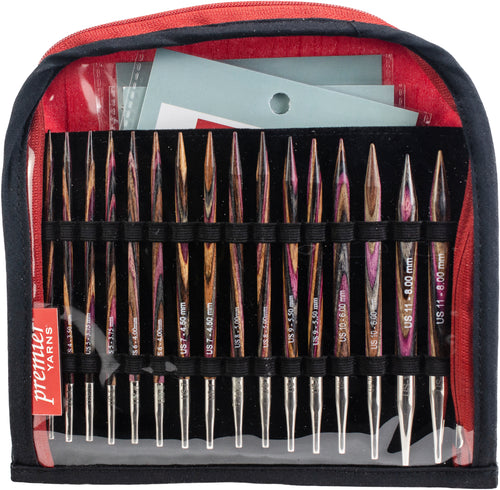 Premier Yarns-Red Rover Filled Needle Set. Beautiful needles and hooks featuring laminated Birchwood sourced in the US, showcasing a sophisticated three-color palette running through each instrument. Warm to the touch, lightweight and strong. Feature a perfect polished wood surgace which works easliy with all types of yarn. Smooth joins m make every project a breeze, wihtout a luxury price. Needle tips included: 4, 5, 6, 7, 8, 9, 10 and 11. Imported.