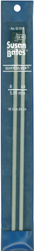 COATS&CLARK-Susan Bates Quicksilver Single Point Knitting Needles. Quicksilver is a premium label from Susan Bates. Quicksilver needles are grey in color, a result of a special an iodization process which also makes Quicksilver slightly smoother and more durable than other aluminum needles. Quicksilver needles are packaged in blue vinyl reusable pouches. These 10in needles are available in sizes 1 to 15. Imported.
