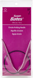 SUSAN BATES-Silvalume Circular Knitting Needles. Perfect for all your knitting needs. These knitting needles offer the broadest range within the Susan Bates label. Size zero to ten and a half Silvalume needles feature anodized aluminum shafts which are dyed to pastel colors. To minimize weight and enhance stitching comfort, sizes eleven and up have plastic shafts. This package contains one sixteen inch circular knitting needle (needles are size one). Cable is clear plastic. Measurement is tip to tip: two needles plus cable. Imported.