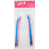 Susan Bates-Silvalume Circular Knitting Needles. Perfect for any knitter! These circular knitting needles feature anodized aluminum shafts and plastic cable. This 8x3.5 inch package contains three circular knitting needles in sizes 9, 10 and 10.5. Cable length is 29 inches. Imported.