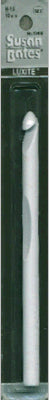 SUSAN BATES-Susan Bates Luxite Crochet Hooks. These hooks offer a warm, lightweight and inexpensive alternative to aluminum. Luxite is a specially formulated plastic material that is very durable. Our famous in line head helps reduce wrist motion for fatigue free crocheting and helps you maintain a more consistent gauge. The larger hooks, sizes L11-P16, are great when you want to use novelty yarns or double or triple strand your favorite yarn to create afghans, bulky sweaters and scarves that are finished in a snap. These 6in hooks are available in sizes from L11 to P16 (7mm to 11.5mm). Imported.