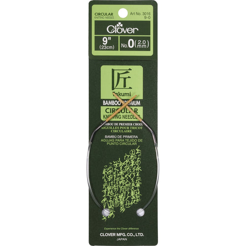 CLOVER-Bamboo Circular Knitting Needles 9in. The shortest length circular needle available. The design of the Clover 9in circulars vary slightly from the other length circulars. The 9in incorporates an angle in the ferrel between the bamboo needle and the clear flexible cable. The angle keeps stitches where they need to be and enables stitches to pass from one needle to the other easily. Perfect for sleeves, cuffs, baby items and more. Imported.