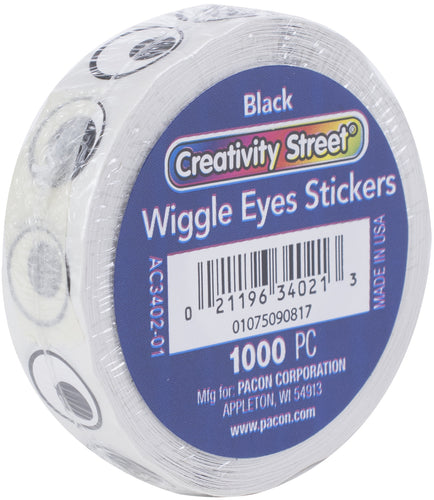 Creativity Street-Wiggle Eyes Stickers. Creative fun for young minds! This package contains 1000 1/2 inch round wiggle eye stickers. Recommended for ages 3 and up. WARNING: Choking Hazard- small parts. Not for children under 3 years. Made in USA.