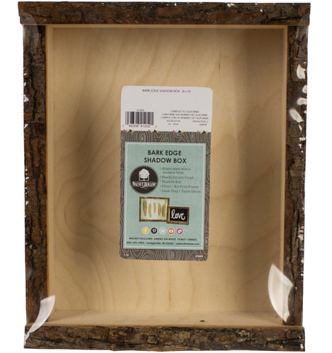 Walnut Hollow-Natural Bark Edge Shadow Box. Basswood is ideal for wood burning and wood carving. This panel is ready to personalize with paint, stain, or other DIY finishes. This package contains one 9-1/2x11-1/2x3-1/2 inch shadow box. Made in USA.