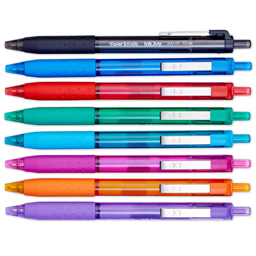 Paper Mate-InkJoy 300RT Retractable Ballpoint Pens: Assorted. A revolutionary ink system that gives you the best in effortless writing. Starts quickly without dragging, requiring minimal pressure from your hand and delivers crisp, clean lines every time. This package contains twenty-four 1.0mm ballpoint pens in an assortment of colors. Imported.