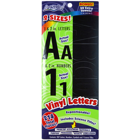 These vinyl letters and numbers are repositionable and durable making them great for school projects, office presentations, indoor and outdoor signage and more! This package contains 212 2 inch and 1 inch tall letters and numbers. WARNING: Choking Hazard- small parts. Not for children under 3 years. Imported.