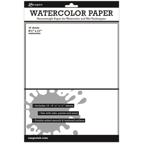 RANGER-Surfaces Watercolor Paper. Ranger's watercolor paper is a versatile surface especially suited for most water coloring and mixed media techniques. A perfect durable surface to stamp, ink or color with water-based markers. Choose your favorite side to create on-smooth finish for detailed design work or textured for creating layers of color. This package contains ten 8-1/2x11 inch sheets of watercolor paper. Made in USA.