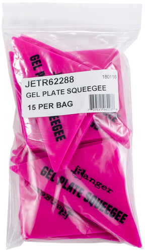 Spread paint, mediums and more easily with the Gel Plate Squeegee! This silicone tool is ideal for spreading even layers of mediums to your Gel Plates to create beautiful prints. Easy clean up. Simply wash or peel dried mediums from tool! This item is a refill for the JETD62264 display. This package contains 15 3.75x3.75x.25 inch pink silicone squeegees. Imported.