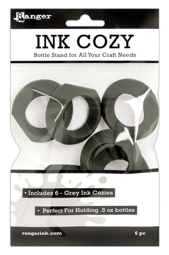 The perfect workspace addition for any crafter. Designed to hold .5oz bottles, these silicone cozies have a cone shape with a flat bottom that holds your bottles in an upright position to put a stop to unwanted accidental spills. The cut edge makes the cozy ideal for storing paints and mediums on the bottle for quick use. This 4x6 inch package contains six grey ink cozies. Imported.