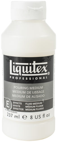 Liquitex-Pouring Medium. Designed to not craze in poured applications, which creates even poured puddles and acrylic sheets. Mix with Soft Body Acrylic Color to promote drying with a smooth even colored film (sold separately). This package contains 8oz/237mL of Pouring Medium. Conforms to ASTM D4236. Imported.
