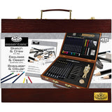 Royal Brush-Wooden Box Art Set: Sketch And Drawing. This kit is packed full of all the items you need to create beautiful works of art! This package contains twelve colored pencils, one sanding block, one blending stump, six compressed color sticks, three charcoal pencils, six graphite pencils, one sharpener, one white eraser, one kneadable eraser, three charcoal sticks, six sketching sticks, one mannequin, one artist guide booklet and one artist pad within one 10-1/4x13-1/4x2-1/4 inch wooden storage box. Conforms to ASTM D4236. Imported.