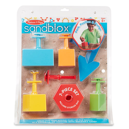 Dig into a whole new way to play with sand! These durable, easy-to-assemble, easy-to-clean tools encourage children to create infinite geometric patterns and towers”just pack, position, and plunge. The sand shapes come out perfect every time, letting you construct elaborate designs or creative buildings. You can even play Sandblox tic-tac-toe! The 7-piece set includes a trowel and mesh storage bag. Great for year-round play at the beach, in a sandbox, or indoors with moldable sand.