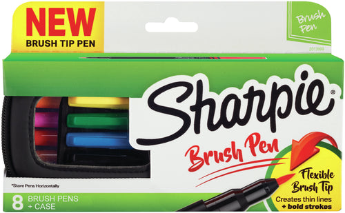 Great for drawing, coloring, and hand lettering. Create thin line and bod strokes with smear-, fade-, and water-resistant ink. This 7.6x3.5 inch package contains eight Sharpie Brush Pens and one case. WARNING: Choking Hazard. Not suitable for children under 3 years. Imported.