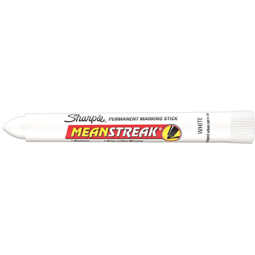 SANFORD-Sharpie Mean Streak Broad Tip Marking Stick. This durable marker with an extra bold tip marks on dark surfaces with an opaque line and adheres to virtually any surface. Specially formulated to mark on both wet and oily surfaces. The quick-drying ink is waterproof, smearproof and fade-resistant. Easy-to-use twist up container makes marking easy. This package contains one broad tip marker. Color: White. Conforms to ASTM D 4236. Made in USA.