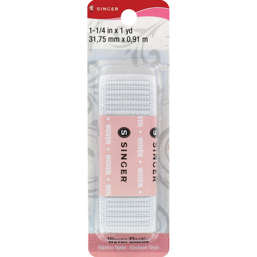 Singer-Non Roll Flat Elastic: White. Perfect for waistbands in skirts, slacks, shorts and pants! A firm, medium elastic that resists rolling or twisting. This package contains one yard of 1- 1/4 inch wide woven flat non-roll elastic. Made of 86% Polyester/14% Rubber. Machine wash, dryer and bleach safe. Imported.
