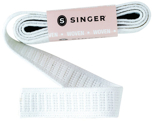 SINGER-Non Roll Flat Elastic: White. Perfect for waistbands in skirts, slacks, shorts and pants! The soft stretch and texture are comfortable to wear against skin. This package contains one yard of 3/4 inch wide woven polyester flat non-roll waistband elastic made of 72% polyester/28% rubber. Resists rolling or twisting. Care: bleach safe, machine wash and dryer safe. Imported.