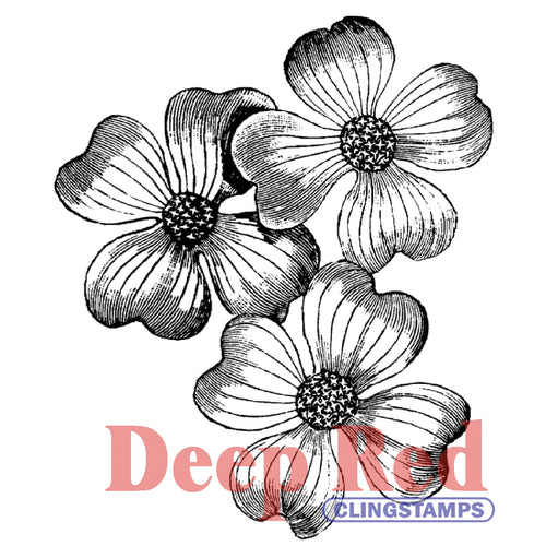 DEEP RED STAMPS-Cling Stamp. There is such a large variety of stamps that you will be able to find the perfect match for every project. There are background stamps, holiday themed, sentiments, love, friendship, floral, characters and more! Deep Red stamps are made of a blend of natural rubber and are attached to a cling foam pad for better definition. This package contains one rubber stamp. Design size: 2x2 inches. Design: Dogwood Flowers. Made in USA.
