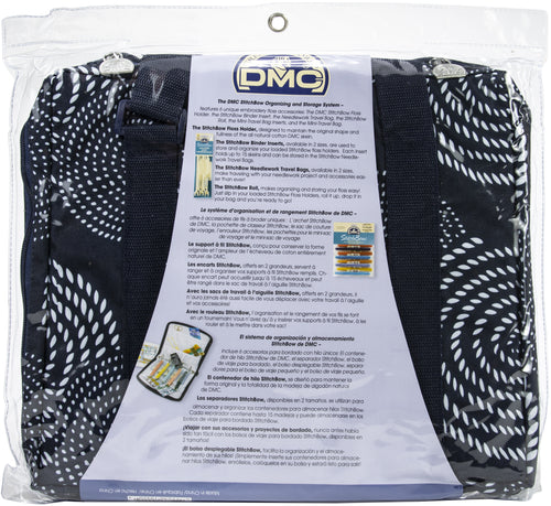 DMC-StitchBow Needlework Travel Bag. Organizing and traveling with your needlework has never been easier! This package contains one 12-1/4x14x1-3/4 inch needlework travel bag with a duo-zipper allowing bag to lay flat open, one StitchBow Binder insert, multiple of zippered vinyl pockets for tools and more, an outer open pocket and adjustable shoulder straps. Outer shell is made of polyester canvas. Bag measures 14x25-1/4 inches when open. Imported.
