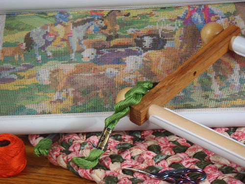F.A. EDMUNDS-Handi Clamp Scroll Frame: 6x6 inches. The Handi Clamp needlework scroll frame features a PVC clamp system to keep fabric in place. No tape, tacks, sewing, or split dowels. This package contains one 6x6 inch scroll frame (two spreaders, two scroll rods with Handi Clamps, four wooden bar knobs, and four washers). Made in USA.