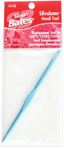 The HandiTool is a 4 inch tool with a crochet hook on one end and a knitting needle (size 3) on the other with a finger flat in the middle. Great for picking up stitches along an edge, picking up dropped stitches, and in a pinch can be used as a cable needle. Every tool bag should have one! This package contains one 4 inch long tool. Comes in a variety of colors. No guarantee what color you will receive. Imported.