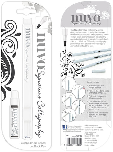 The Nuvo Signature Calligraphy pen is designed to create perfectly handwritten embellishments without the hassle and mess. The ink can be smoothly applied with the soft brush nib to create both thick and thin lines. Refill with the handy cartridge to extend the life of the pen. This package contains one 7 inch long pen and one refill cartridge. Conforms to ASTM D4236. Imported.