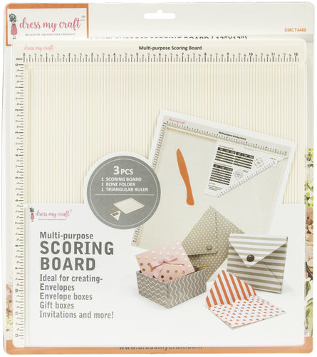 A score guide helps to create envelopes, envelope boxes, explosion boxes and gift boxes. A scoring tool is included to make scoring easy and can be stored inside the score board. Comes with English measurements in quarter inch segments. This package contains one 12x12 inch multi-purpose scoring board. Imported.