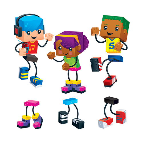 Vibrant designs energize spaces and delight and engage viewers. Label containers, lockers and centers, accent displays, decorate walls and posters, showcase student work, inspire creative writing, and reward accomplishments. Fun poses, mix 'n match! Endless possibilities! Precut and ready to use. Durable and reusable. 5 1/2" tall. 6 kids, 3 of each; 30 swappable legs. 48 pieces. Coordinates with BlockStars! Collection.