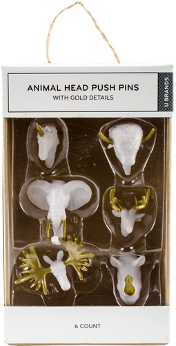 Express your personal style with these unique trend-forward office accessories! This packaging is a reusable storage box that helps you get organized while reducing waste. This 3.25x5.5x1.5 inch package contains six animal head push pins. Imported.