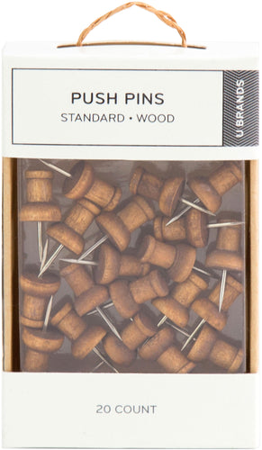 Express your personal style with these unique trend-forward office accessories! This packaging is a reusable storage box that helps you get organized while reducing waste. This 2.5x3.75x1 inch package contains 20 wood standard sized pushpins. Imported.