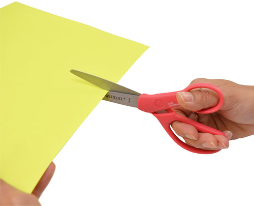 Westcott 7 inch scissors with handles that contain an anti-microbial agent to inhibit the growth of bacterial stains and odors. Scissors feature 3 inch stainless steel blades and are suitable for left- and right-handed use. Assorted colors (color can't be specified when ordered). This package contains one pair of 7 inch scissors. Imported.