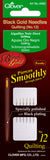 CLOVER-Black Gold Quilting Needles. Polished along the axis for a velvety smooth surface and sharp points for effortless piercing. Black-plated for enhanced rust resistance. Do not bend or break easily for the finest and most exquisite stitching. This package contains six size 9 needles. Imported. :