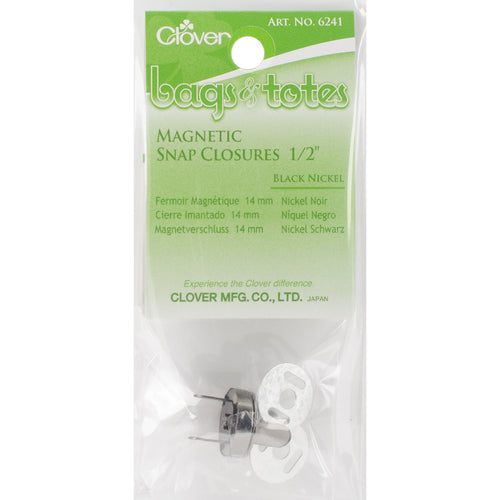 CLOVER-Magnetic Tote Bag Closure. Use the closure to help securing belonging in your purse, tote or other bag. Simple make two cuts in the material, insert the closure tabs, insert back closure on back of material and fold the tabs out. This package contains one 1/2 inch closure. Design: Black Nickel. Imported.