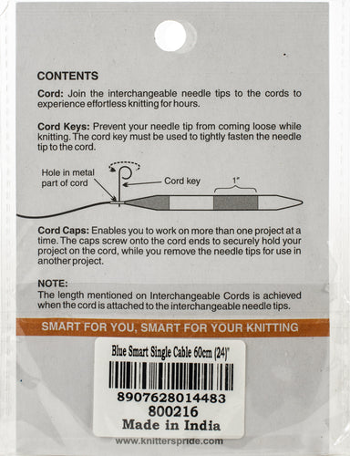 Another innovative product for knitters-the hi-tech SmartStix are knitting needles and tape measure in one! Marked at 1 inch intervals on both the needles and the cords, SmartStix helps knitters measure their creations on the go (while removing the need to use a tape measure), check their gauge and even test the yarn weight. These needles are made from high quality & lightweight aluminum that is easy on the hands. This package contains one 16 inch cord (24 inches with needle tips), cord keys and cord caps. Imported.