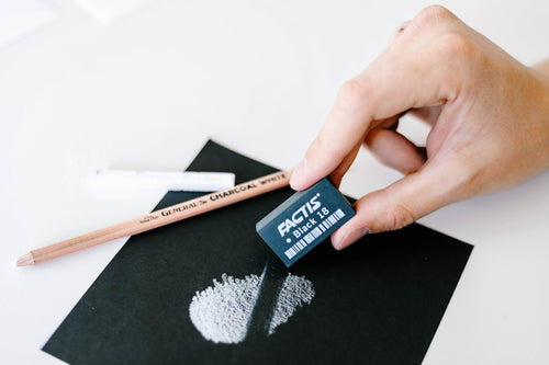 GENERAL PENCIL-Magic Black Eraser. A superior eraser for charcoal and pastel. It is soft and gentle on fine papers, yet strong enough to erase straight and fine lines. Use Generals non-abrasive erasers to erase marks on fine art work, watercolor papers, textured papers, and memory book pages. Conform to ASTM D4236. Made in USA.