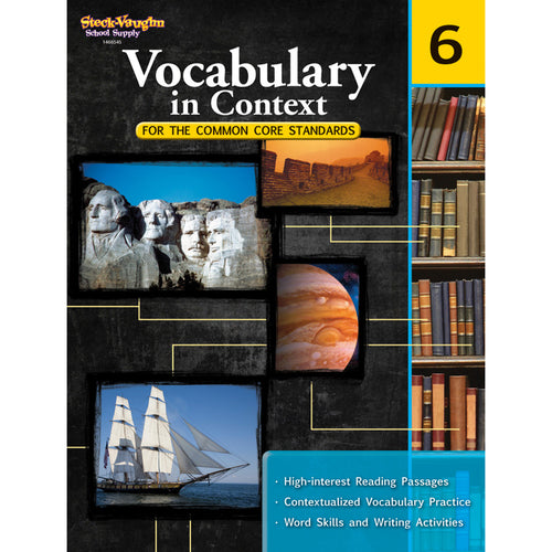 Activities align with Common Core Language Standards for Vocabulary Acquisition and Use. These workbooks offer standards-based activities for enhancing the vocabulary development of students from grades 2-9. They provide contextualized vocabulary practice and help students understand the following concepts: synonyms, antonyms, prefixes, suffixes, homophones, parts of speech, definitions, and context clues.
