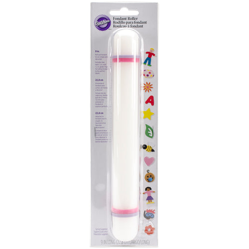 WILTON-Fondant Rolling Pin. Use this handy, non-stick tool to roll out fondant for all kinds of cake and cookie decorating. This package contains one 9x1x1 inch Fondant Roller, two 1/8 inch guide rings, and two 1/16 inch guide rings. Imported. /