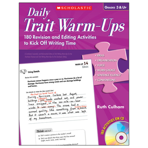 Why has the 6+1 TRAIT model had such a tremendous impact on writing instruction? Because it works. It allows teachers to pinpoint students' strengths and weaknesses in ideas, organization, voice, word choice, sentence fluency, conventions, and presentation, and focus instruction. Now Culham turns her expert eye to our youngest students. Like her groundbreaking guide for grades 3 and up, her new book contains scoring guides, sample papers, and focus lessons for each trait, but framed to address K-2 teachers' needs! 304 pages. Click here to learn more about Scholastic Professional