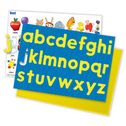 Kids can feel letter shapes and learn sequences with these classic Lauri crepe rubber alphabet puzzles. Letters are 2" tall and fit into an 8.5" x 11" puzzle frame. A picture pattern helps kids match letters. Just remove the pattern to vary the challenge. For ages 3+. Contents: 26 Lauri Crepe Rubber Lowercase letters, 8.6" x 11" Lauri Crepe Rubber Puzzle Frame, Picture Pattern, Storage Tray. CHOKING HAZARD - Small parts. Not for children under 3 years.