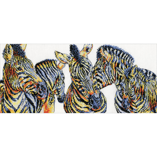 Tobin-Design Works: Counted Cross Stitch Kit. Beautiful designs and top quality materials make Tobin one of the top cross stitch kit makers worldwide. This package contains 14-count Aida cloth, embroidery floss, needle and instructions. Design: Wild Things Zebras. Finished size: 8x18 inches. Made in USA.