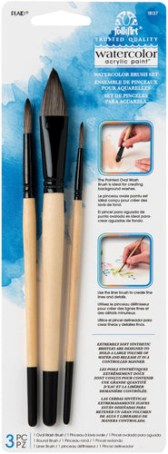 FolkArt offers brushes, tools and accessories for all your project needs. Whether you are a beginner, expert, decorative painter or someone who enjoys stencilling, FolkArt will help you achieve beautiful results. This 4x10.5 inch package contains three watercolor brushes; one oval wash, one round, & one liner. Imported.