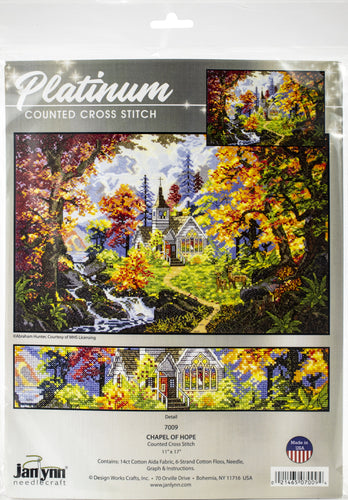 Beautiful designs and top quality materials make Design Works one of the top cross stitch kit makers worldwide. This package contains 14-count Aida cloth, embroidery floss, one needle, graph and instructions. Design: Chapel Of Hope. Finished size: 10.5x16 inches. Made in USA.