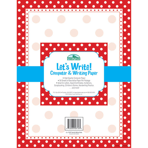 Classy, sporty, and fun, this Red and White Dot Computer Paper is perfect for any occasion! Our Red & White Dot computer paper is multi-directional! Use it vertically for writing letters home and other correspondence and then turn it sideways to create customized award certificates, notices...and more! The possibilities are limited only by your imagination!