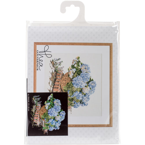 Thea Gouverneur-Aida Counted Cross Stitch Kit: 18 Count. Inspired by nature, these kits are detailed using a variety of colors with results that are realistic and true to nature! This package contains one 12-3/4x14-1/2 inch piece of Aida cloth, pre-sorted DMC floss, one John James needle, one easy-to-follow chart and instructions in English. Design: Blue Hydrangea. Imported.