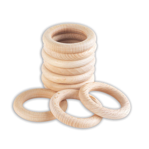 Inspire creative play and problem solving by making these rings part of your toddler's treasure box of odd-shaped, safe items. These Small Wooden Rings consist of a set of 10 smooth beechwood rings. Size: 1.9" diameter.